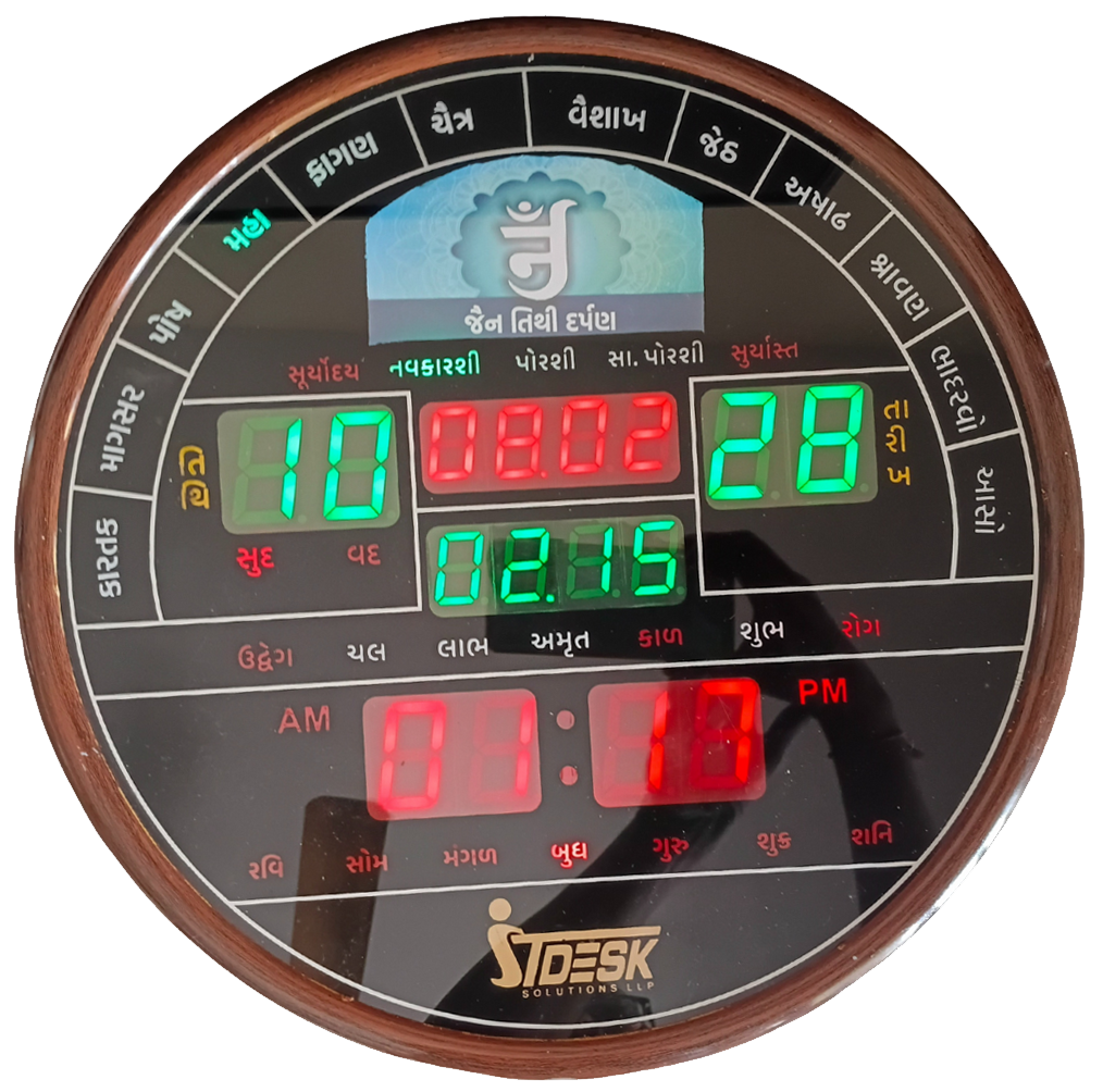 Our aim is to provide useful jain products in day to day life. On a Regular Basis We Need Tithi & Panchaang, which we have embedded in Wall Clock. It is totally new concept. It is vey useful for Dharamshala, Bhojanshala, Upashray, Dersar, Jainy's Office & Home. Not only this, if you think that space is a constraint to install Wall Clock then we have brought Completely Free Listing Service for Jain Dharamshala, Tithi, Jain Food Suppliers Right on Your WhatsApp. You do not have to isntall any new app. Just Subscribe our Channel and start using these services *FREE* of Charge. For More Details You Can Reach Us on 7977228924.